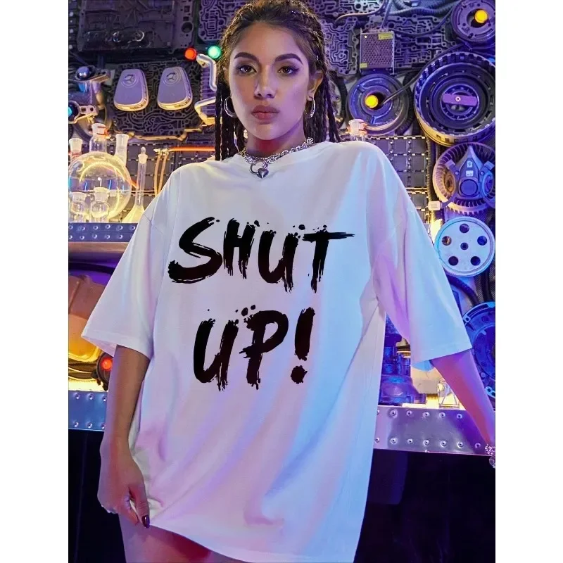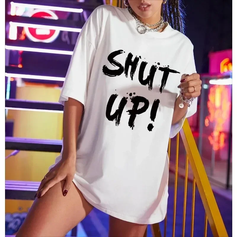 Shut Up Fun Printed T-shirt Women’s Summer Fashion Extra Large O-Neck T-shirt Retro Short Sleeve Street Clothing Couple Top